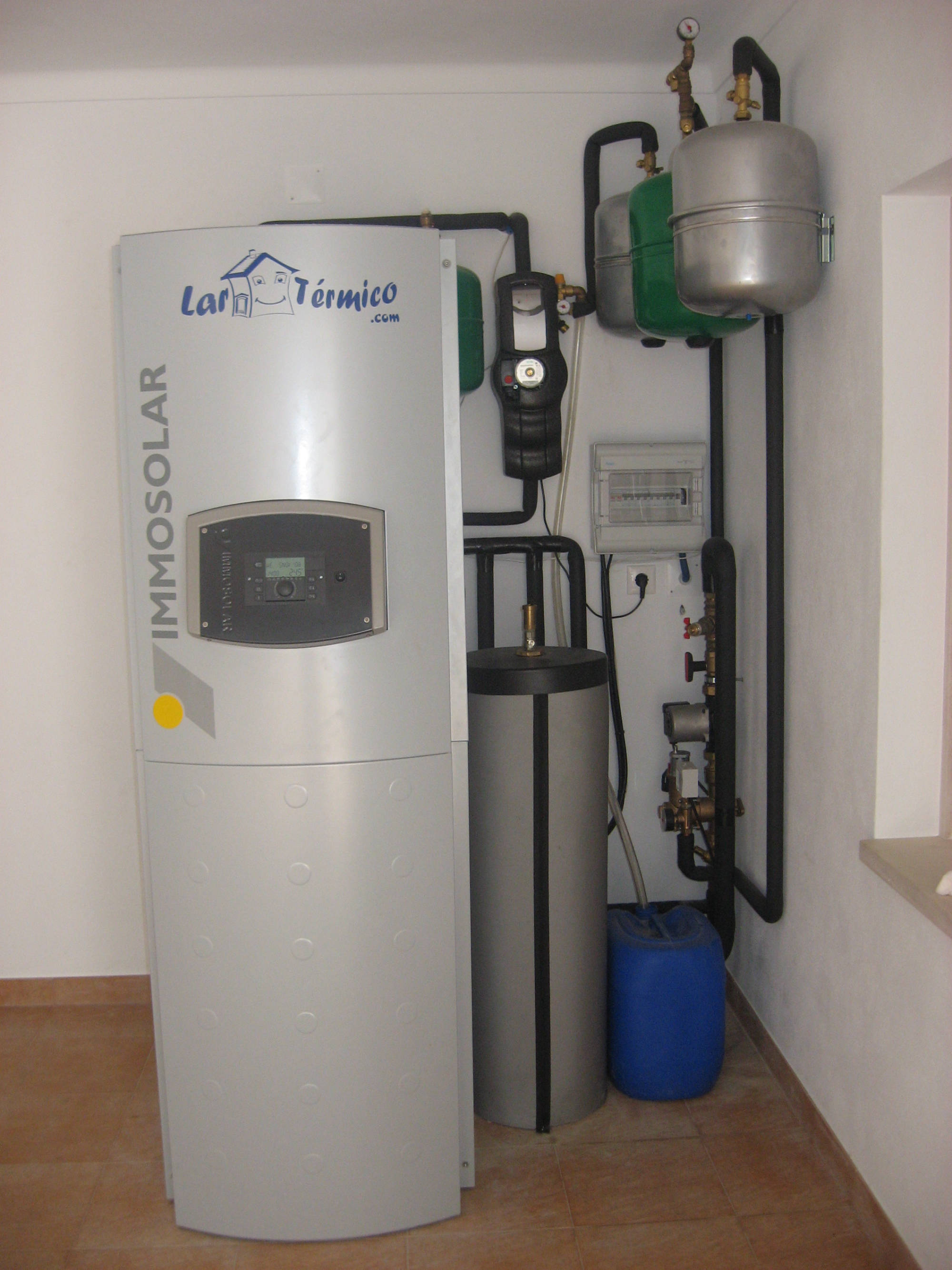"A Lar Térmico procedeu recentemente à substituição da central de Aquecimento Central e Aguas Quentes Sanitárias na Escola Alemã de Lisboa, com a instalação de equipamento topo de gama da Buderus que possibilitará à Escola oferecer todo o conforto que os utentes merecem. Através deste moderno sistema de caldeiras de condensação em cascata, com 8 caldeiras com uma potência máxima de 800kW e mínima de 30kW, com um rendimento de 110%, a Lar Térmico proporcionou à Escola Alemã um sistema de grande rendimento, altamente eficiente e económico. Devido à necessidade crescente de aproveitamento da Energia Solar, a Lar Térmico incluiu um sistema de 10 colectores solares Buderus para apoio às águas quentes sanitárias e aquecimento da piscina. Grande parte das bombas circuladoras foram substituidas por bombas de alta eficiência energética (A), "Wilo Stratos", as quais permitem uma poupança de energia até 80% em comparação com bombas não controladas. A Lar Térmico propõe-se, com um vasto leque de soluções, adequadas a cada cliente e situação, proporcionar aos seus clientes modernas, eficientes e económicas instalações de Aquecimento Central e Energia Solar."